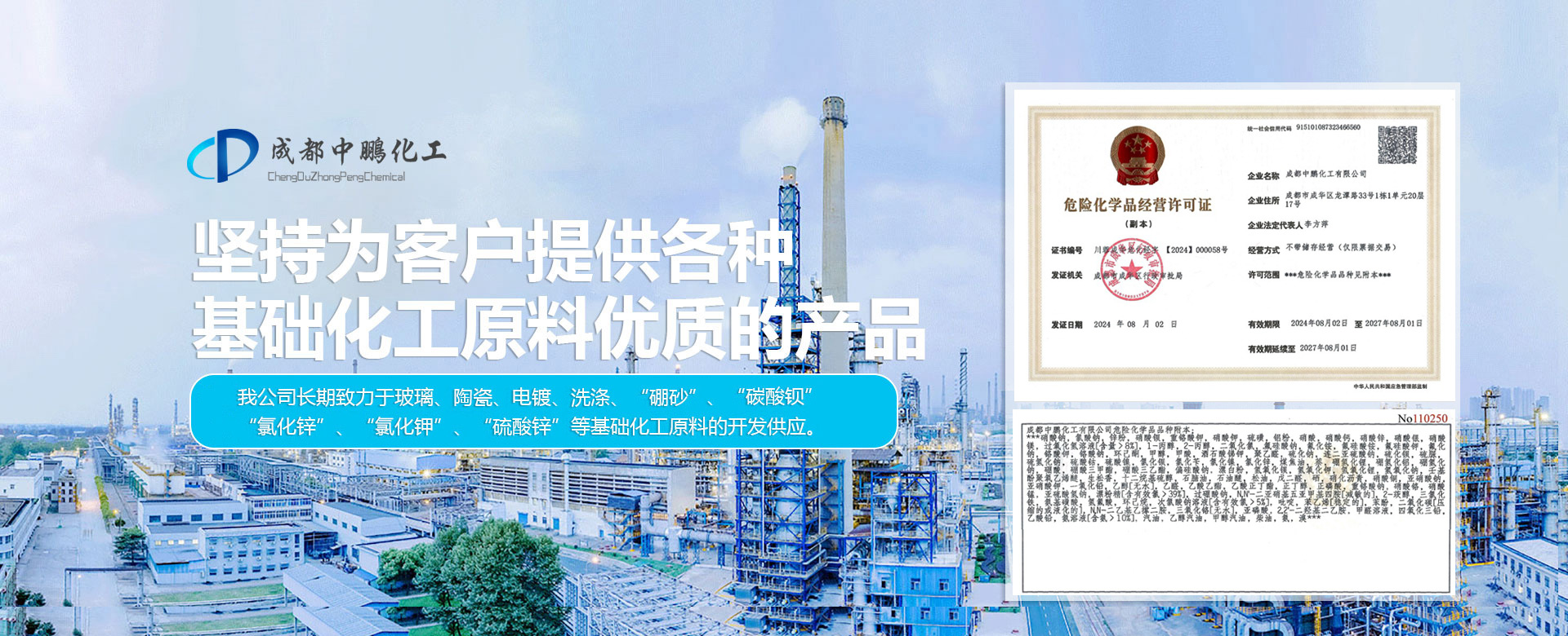 成都中鵬化工有限公司成立于2001年,位于成都市新都區(qū)木蘭木名商塑化城2棟11號(hào),公司成立16年以來,一直堅(jiān)持為客戶提供各種基礎(chǔ)化工原料的產(chǎn)品。我公司長期對(duì)于玻璃、陶瓷、電鍍、洗滌、“硼砂”、“碳酸鋇”、“氯化鋅”、“氯化鉀”、“硫酸鋅”等基礎(chǔ)化工原料的開發(fā)供應(yīng)。 公司現(xiàn)在員工上百人,在全國擁有多個(gè)營銷體系和完善的售后服務(wù)體系,長期以來,通過為客戶提供各種基礎(chǔ)化工原料的產(chǎn)品,形成了良好的合作關(guān)系...